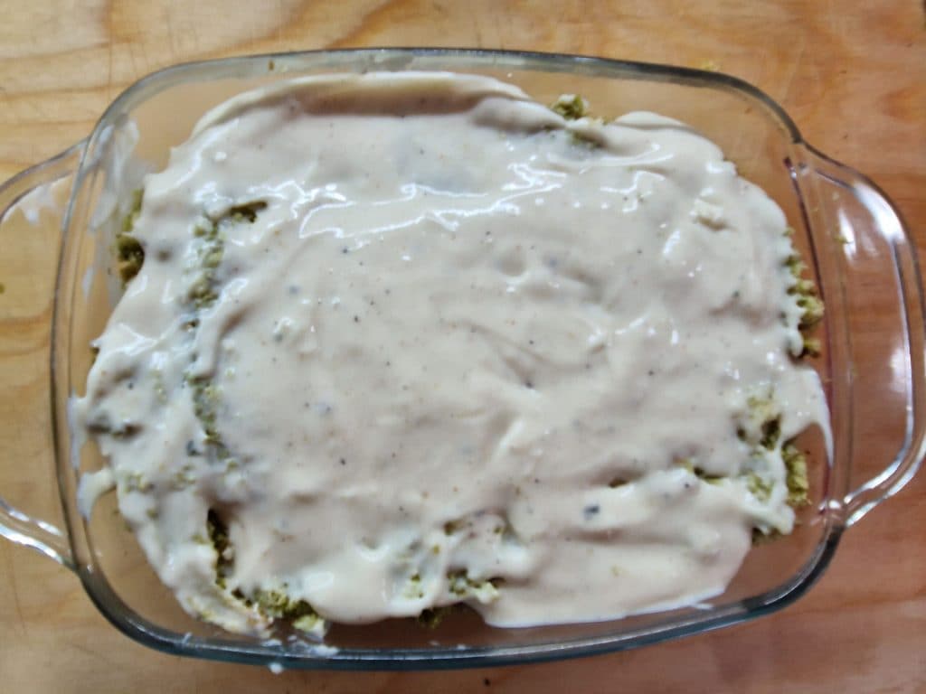 Na última camada, certifique-se de que seja coberta com molho bechamel, se sobrar um pouco de pão ralado e finalmente frios e provolone