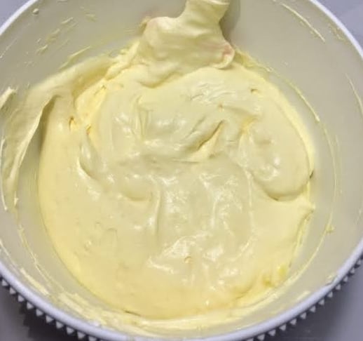 Agora, combine os ovos pasteurizados com o creme de ricota e iogurte com uma espátula, movimentos delicados de cima para baixo para não desmontar a mistura.