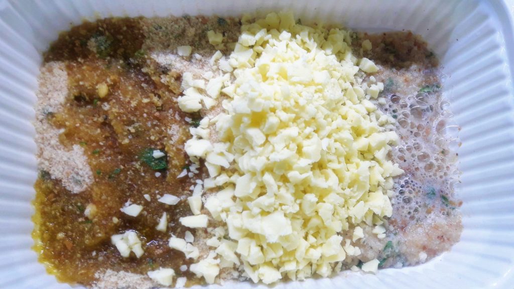 e coloque sobre cada uma um montinho de farinha de rosca temperada.
