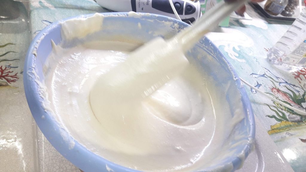 Adicione-as uma a uma ao creme, com um movimento lento de cima para baixo.