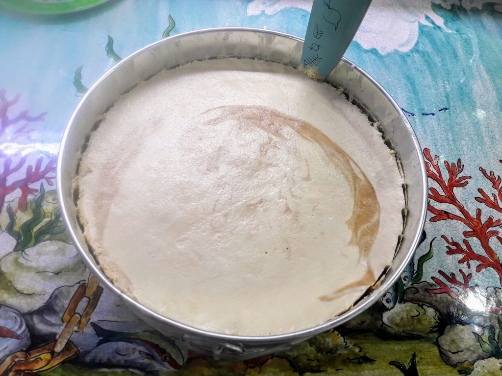 Agora é hora de despejar a mistura na forma sobre os biscoitos.