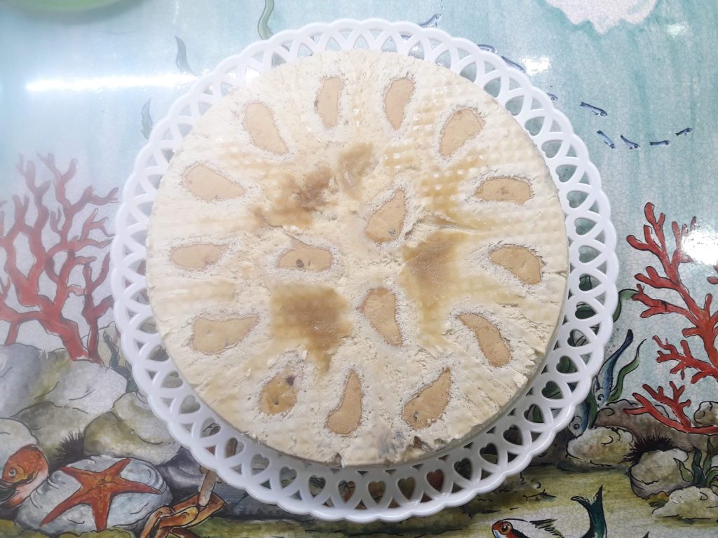 A este doce apliquei uma antiga técnica de decoração, a de gravura, desenhando sobre um véu de café.