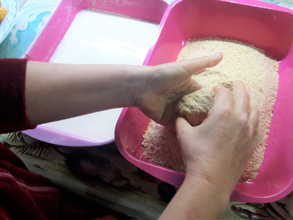 Quando descongelar, passe novamente na farinha de rosca antes de fritar-