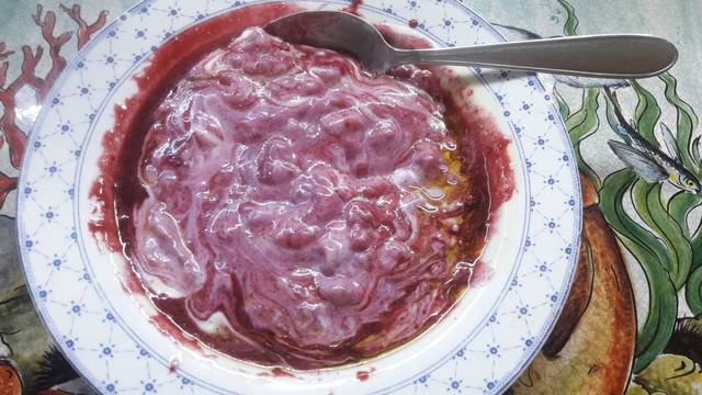 Bater 3 morangos 6 amoras junto com o suco de 1 limão