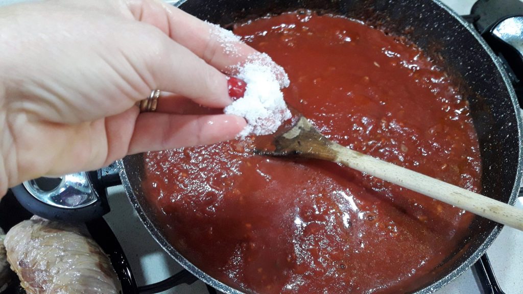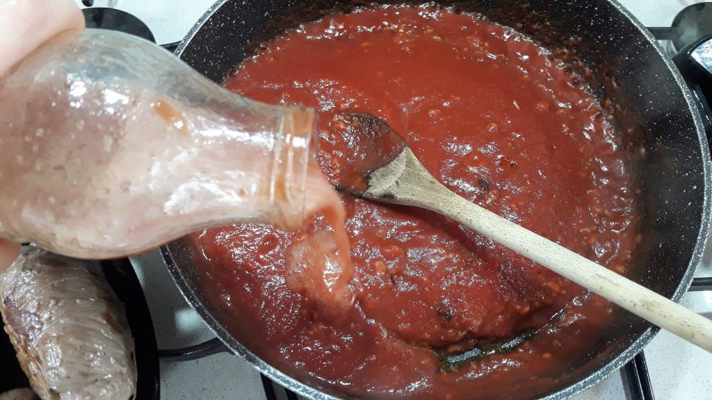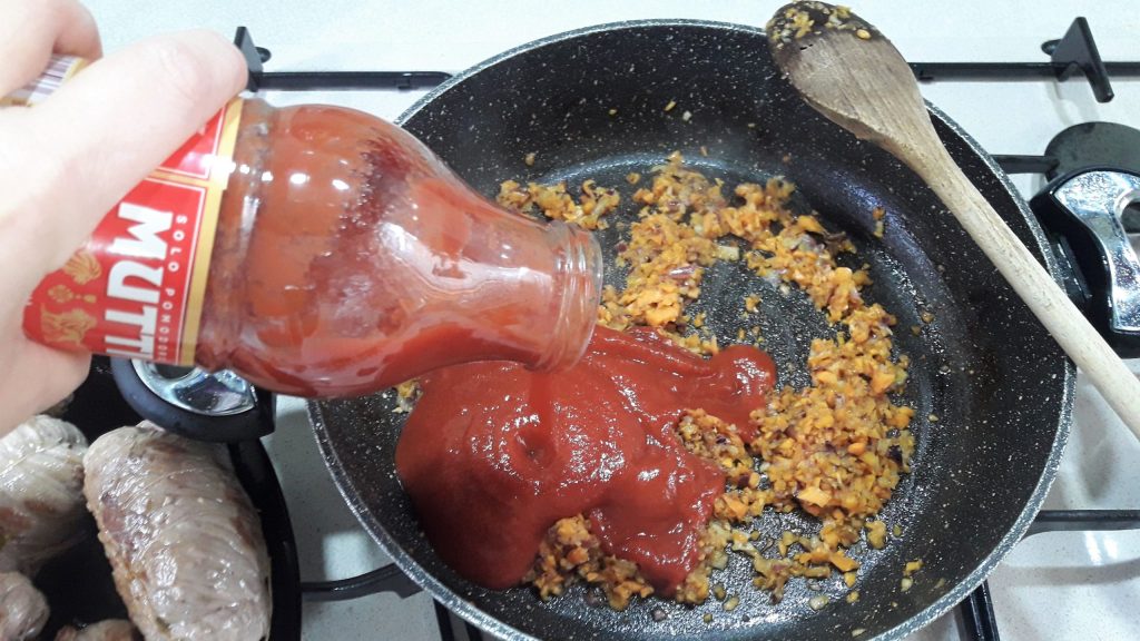 Adicione a passata de tomate, e..