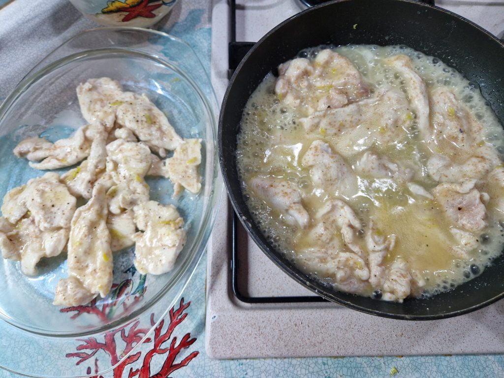 Preparação: Tirinhas de frango na manteiga e limão