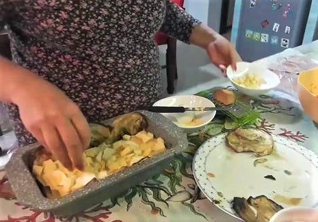 Repita todas as etapas até preencher a forma. Complete com mais fatias de berinjela e o purê de tomate.