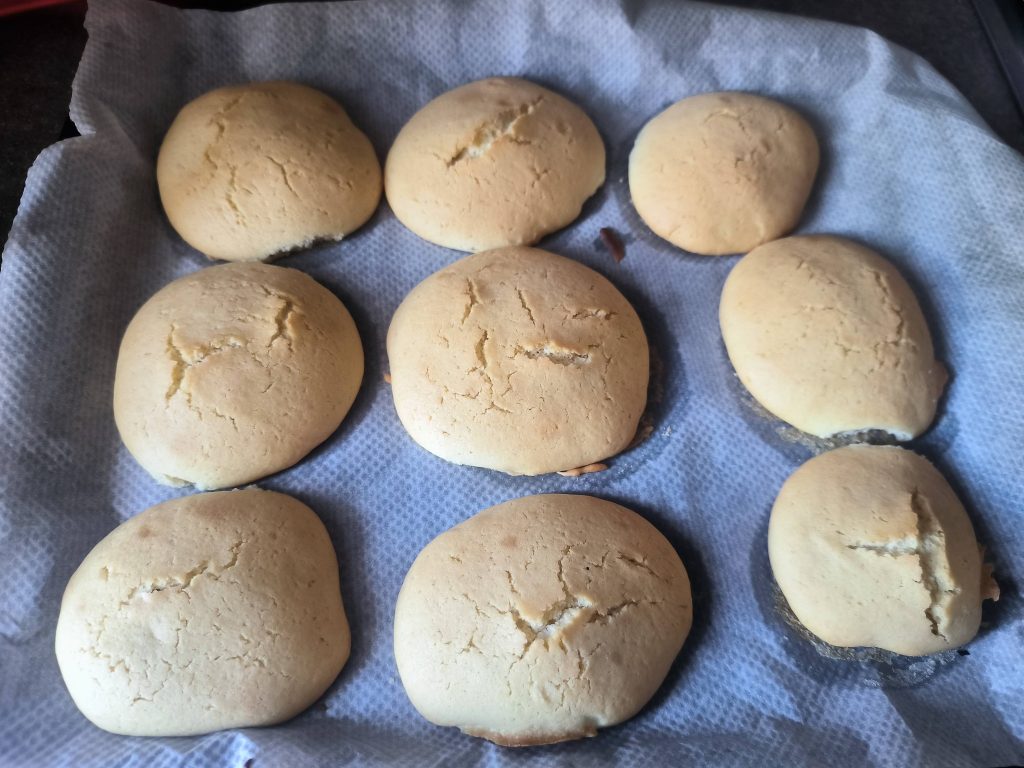 Coloque e asse: Coloque a massa em colheradas sobre uma assadeira forrada com papel manteiga, deixando boas distâncias entre elas; o tamanho fica a seu critério — os meus são grandes. Asse os biscoitos a 180 graus por cerca de 15 minutos, mas ajuste conforme o seu forno. Depois de assados, deixe esfriar.