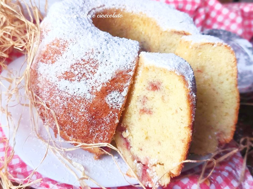 Para preparar a massa, você pode seguir esta receita, você deve adicionar no final as gotas congeladas de geleia e depois misturar e despejar na forma de cerca de 24 cm. Asse a 180 graus por cerca de 35 minutos, mas ajuste-se com seu forno e faça o teste do palito. Desenforme e polvilhe com açúcar de confeiteiro.