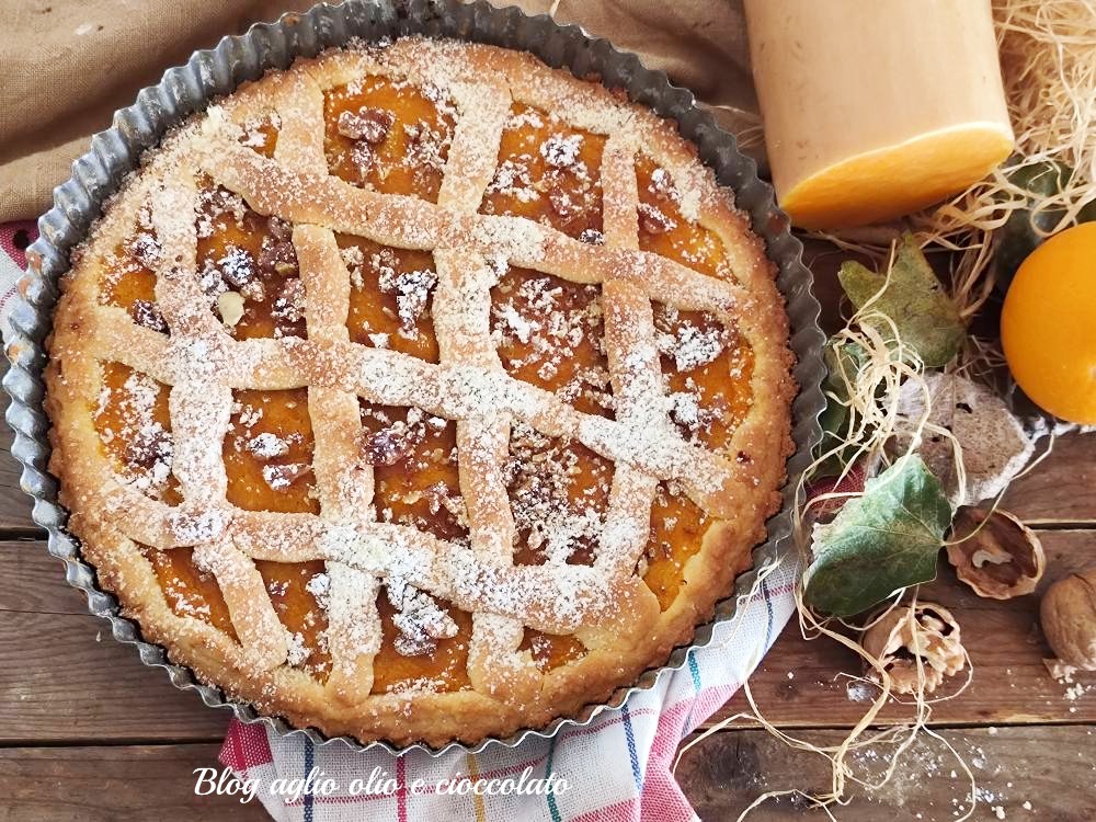 a torta com massa frolla montada creme de abóbora e laranja, encheu minha cozinha com um aroma envolvente, uma sobremesa que cheira a casa de Outono graças ao perfume das laranjas, uma doce delícia para saborear a qualquer hora do dia, especialmente quando há um sol fraco lá fora e uma leve brisa que te obriga a vestir um suéter e, portanto, um bom chá e uma bela fatia desta torta são perfeitos, assim como a torta com creme de abóbora e maçãs