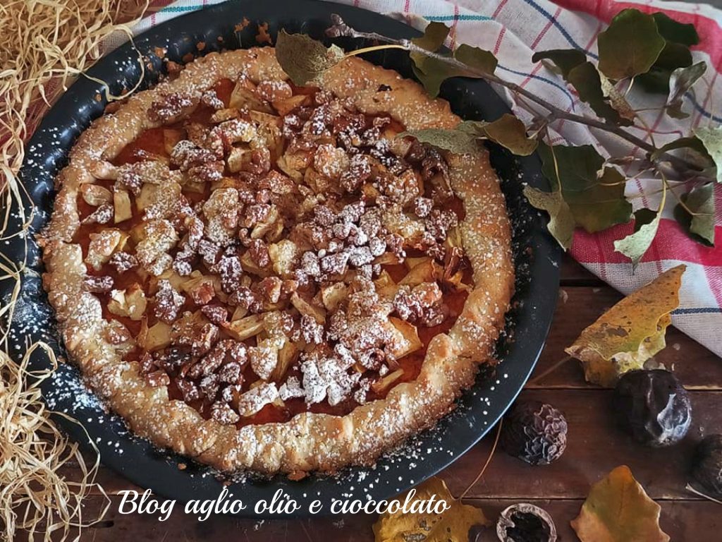 Torta de abóbora e maçã, um doce tanto no sabor quanto nas cores, todo de outono, com uma massa muito crocante. Para fazer esta deliciosa torta, usei a massa amanteigada que acho fantástica, mas você também pode usar sua receita favorita para fazer a massa. Se quiser obter um doce com base crocante e macia, então você deve experimentar a massa amanteigada. Como recheio, preparei um creme de abóbora com grapefruit e recheei com maçãs e nozes, uma mistura de sabores realmente fantástica. Recomendo que você experimente e tenho certeza de que conquistará você na primeira mordida. Vamos ver o que precisamos para fazer a torta de abóbora e maçã.
