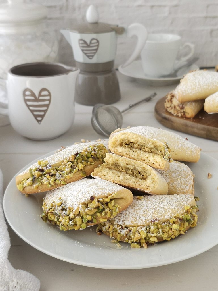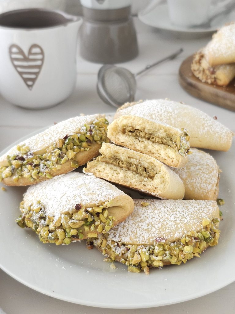 Os biscoitos meia-lua de pistache devem ser armazenados em recipientes herméticos ou de lata por alguns dias. Se desejar, você pode substituir o creme de pistache por creme de avelã ou por simples geleia ou creme de confeiteiro.