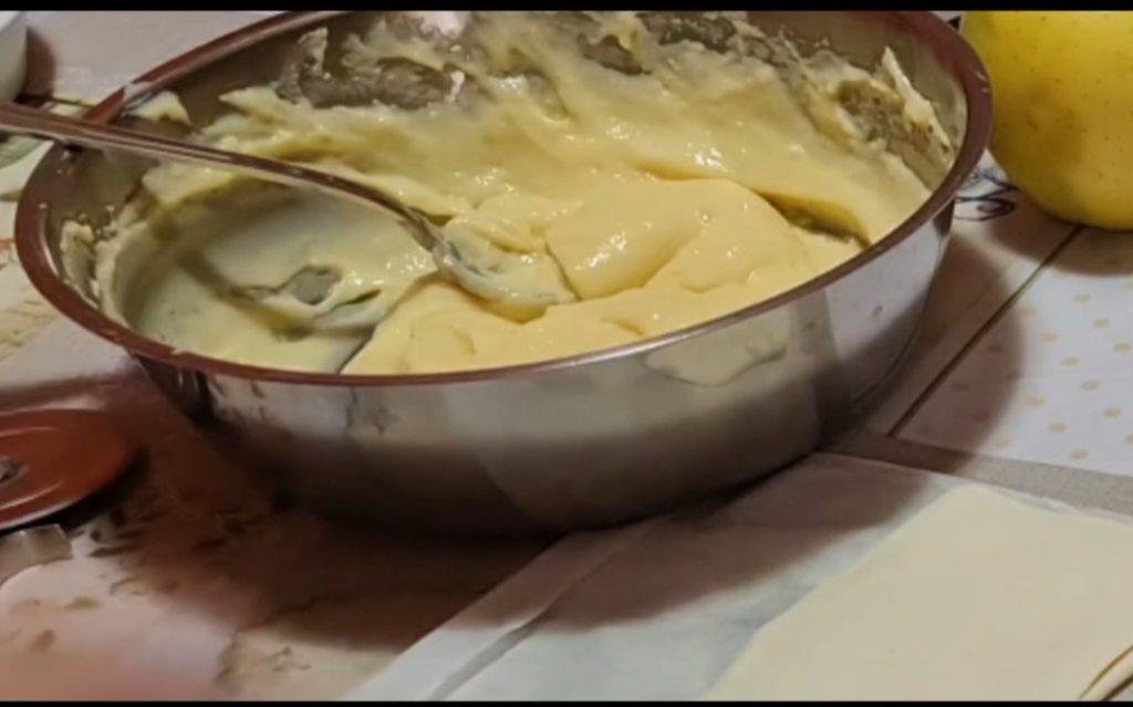 Ingredientes para as castagnole de cacau recheadas, massa macia com colher