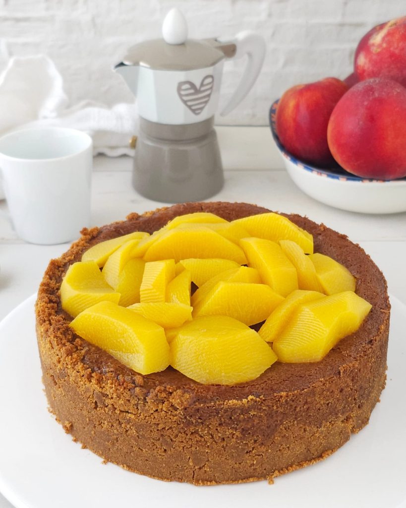 A cheesecake assada de pêssego pode ser conservada na geladeira por alguns dias. Se você quiser usar Philadelphia, pode fazer isso e omitir o mascarpone. Se não gostar dos biscoitos Digestive para a base da cheesecake, você pode usar tranquilamente biscoitos secos, mas terá que usar uma quantidade maior de manteiga derretida.
