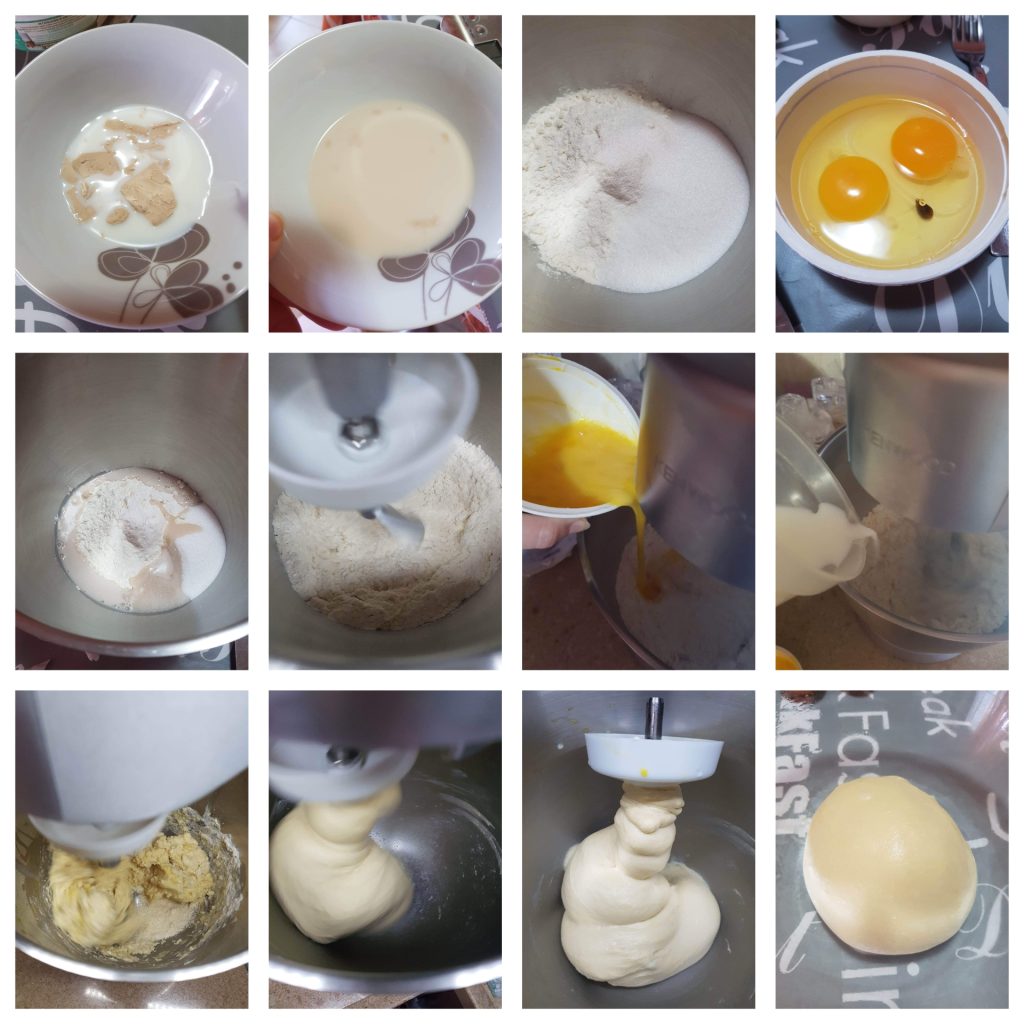 Passos para os enroladinhos de brioche com creme de confeiteiro e gotas de chocolate