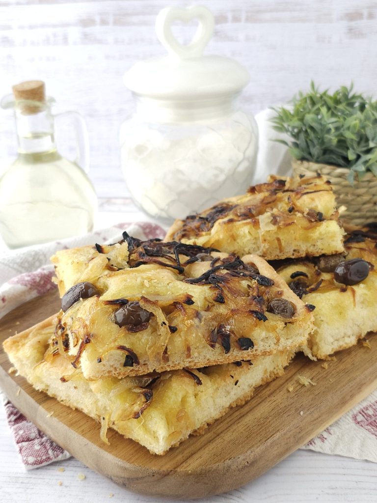 Olá amigos, hoje lhes apresento esta deliciosa focaccia com cebolas e azeitonas super macia. Simples e rápida de fazer, a combinação de cebolas e azeitonas é um must. A seguir, vocês encontrarão a receita..