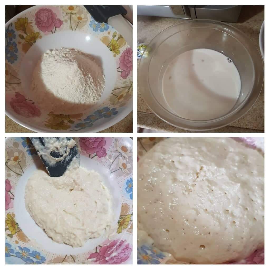Para fazer este panettone gastronômico, primeiro você precisa preparar uma pré-massa e então o fermento ou Polish. Desta forma, você obterá um pão brioche ainda mais macio. Em uma tigelinha, dissolva o fermento com o leite e o açúcar. Em outra tigela, adicione a farinha e misture aos poucos o leite, mexendo com um garfo até obter uma massa pegajosa. Cubra com filme plástico e deixe fermentar por 1 hora em um forno pré-aquecido e então desligado há um tempo. Desta forma, você terá uma câmara de fermentação adequada de 28º-30ºC. Se quiser aumentar o fermento biológico, o tempo de fermentação será mais curto. O fermento estará pronto quando houver muitas bolhas na superfície.