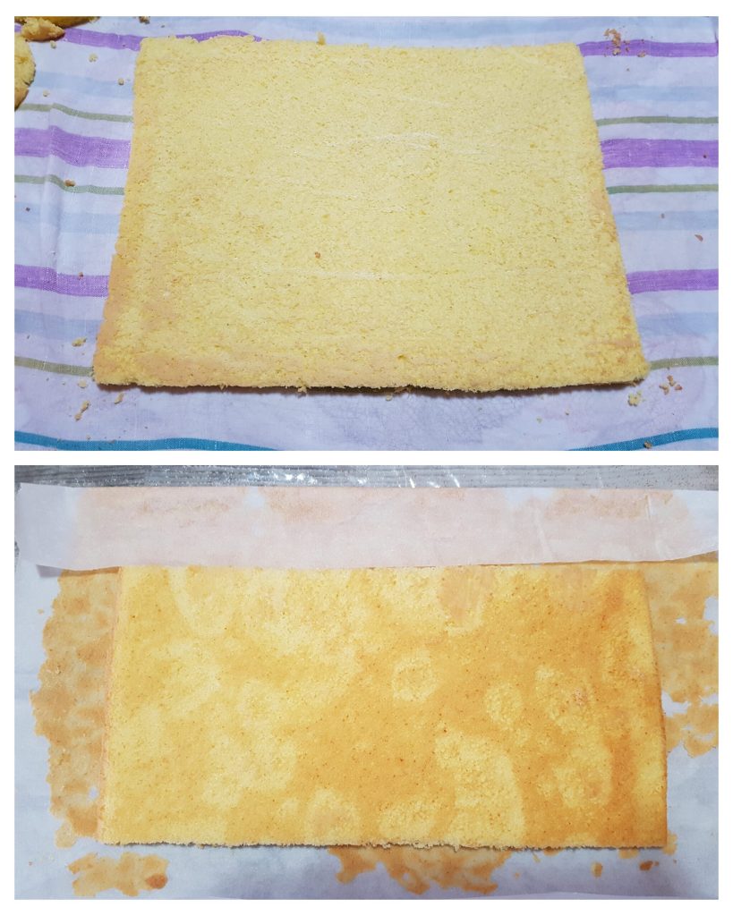 Separe as claras das gemas e em uma tigela grande coloque as claras e bata com batedores elétricos, adicionando aos poucos o açúcar refinado e bata até ficar em neve firme. Adicione as gemas uma a uma, a baunilha e continue a bater. Finalmente, adicione também o óleo de girassol em fio. Separadamente, peneire a farinha 00 com o sal e o fermento em pó e adicione-os à mistura aos poucos, mexendo com uma espátula de baixo para cima, para não desmontar a mistura. Despeje a mistura em uma assadeira retangular de 35×40 forrada com papel manteiga e nivele bem a superfície. Asse em forno estático pré-aquecido a 180º por 15 minutos. Deixe esfriar. Quando o pão de ló estiver frio, corte-o do mesmo tamanho das bases da massa folhada para que possam ser sobrepostos. O restante do pão de ló pode ser usado em qualquer outra receita.