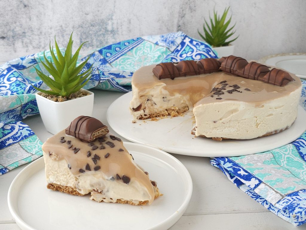 Pegue um anel de aço e coloque-o em um prato de servir que possa ir ao freezer. Coloque o papel manteiga e disponha o biscoito streusel de avelã. Despeje metade do creme feito anteriormente, disponha os kinder bueno picados grosseiramente com a faca e despeje o creme restante nivelando bem com uma espátula. Coloque o bolo no freezer por 4-5 horas. Enquanto isso, prepare a cobertura bueno. Aqueça o creme de leite fresco líquido e adicione o creme branco de avelã, misturando bem até obter uma cobertura macia. Deixe esfriar. Retire o bolo do freezer, cubra a superfície com a cobertura bueno e retorne ao freezer por alguns minutos. Retire o bolo do freezer pela última vez, desenforme cuidadosamente o círculo ou anel com a ajuda de uma passagem de secador, remova o papel manteiga e coloque em um prato de servir.