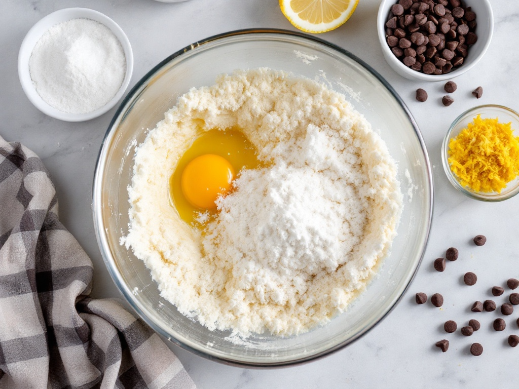 Em uma tigela, bata o ovo com o açúcar até obter uma mistura espumosa. Adicione o leite e o óleo (ou a manteiga derretida) e misture bem. Incorpore a farinha peneirada, o fermento, a pitada de sal e as raspas de limão. Se desejar, adicione as gotas de chocolate ou as frutas secas. A massa deve estar lisa e homogênea, mas não muito densa.