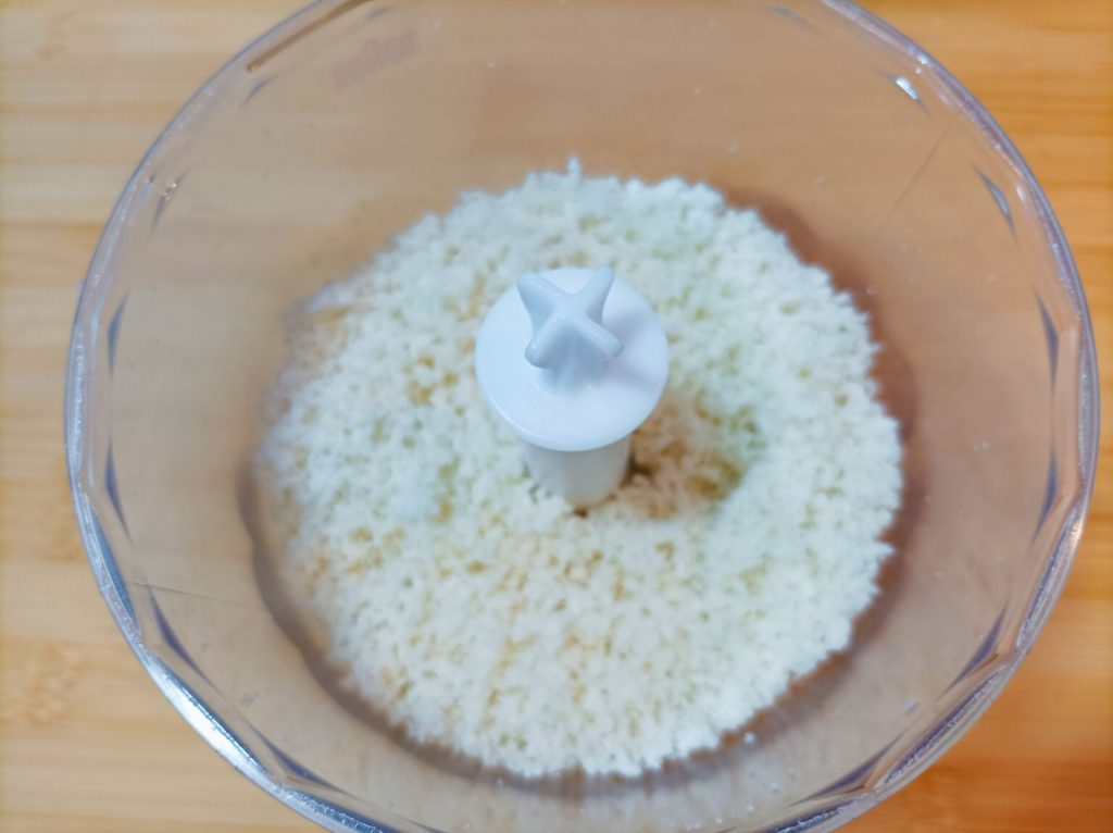 • Transfira a mistura para um recipiente e acrescente o parmesão e uma pitada de sal.