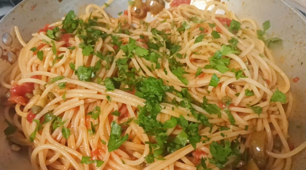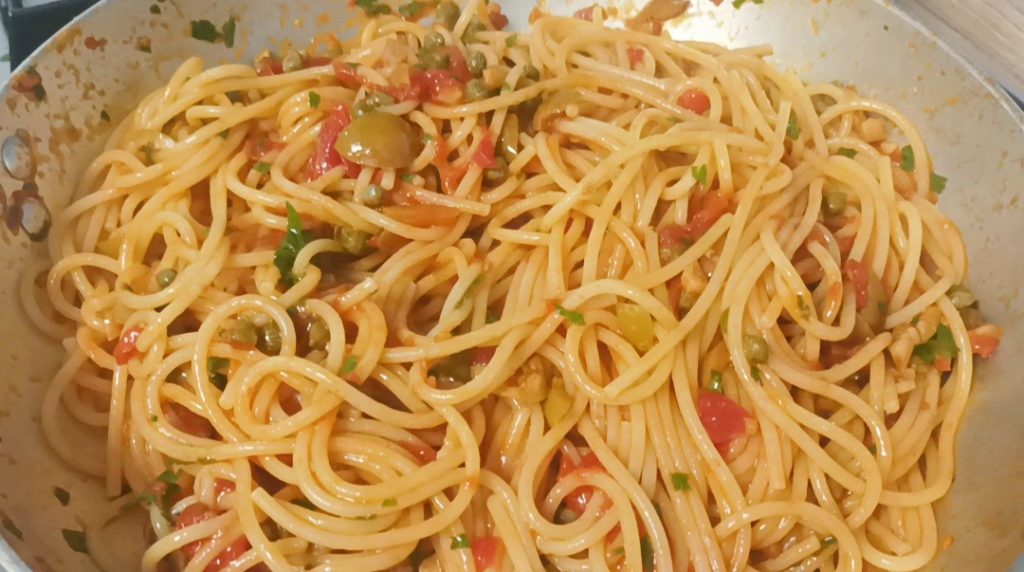 Seu espaguete alla puttanesca está pronto. Bom apetite!!