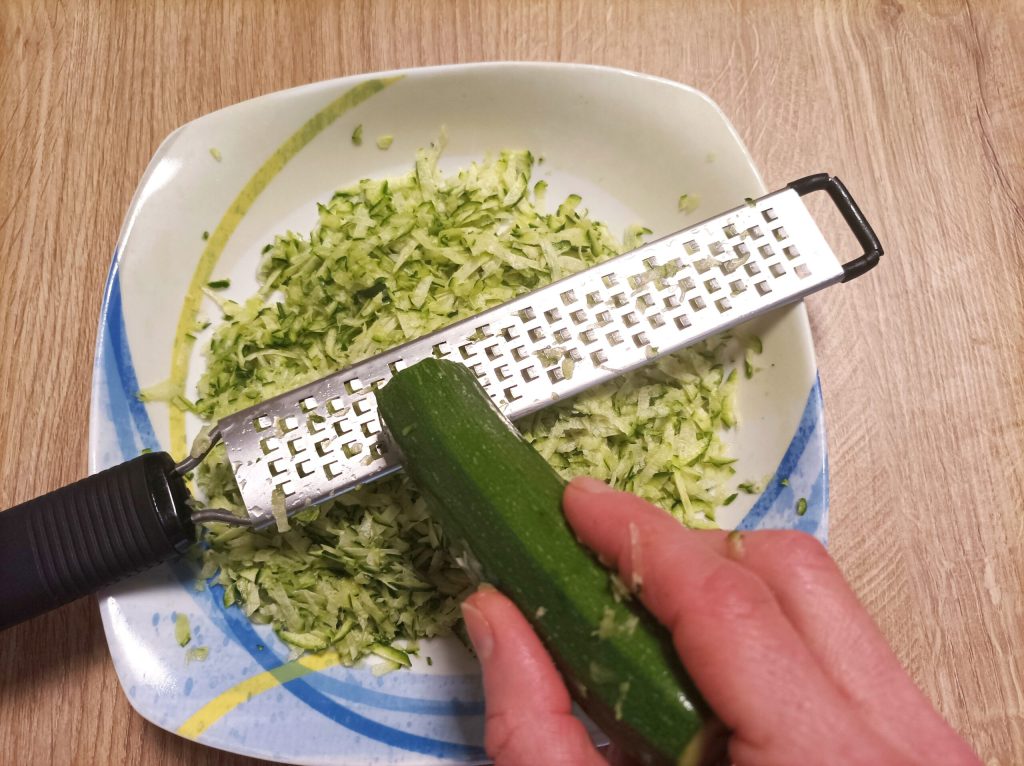 Primeiro, lave e rale as abobrinhas (se tiver flores, limpe, pique e reserve-as).