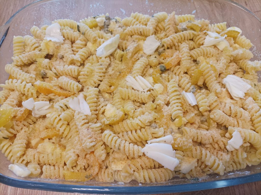 Os fusilli assados com pimentões estão prontos! Bom apetite!