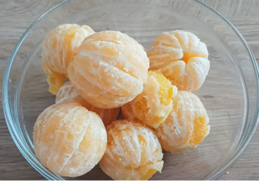Abra as laranjas em várias partes e corte os gomos ao meio.