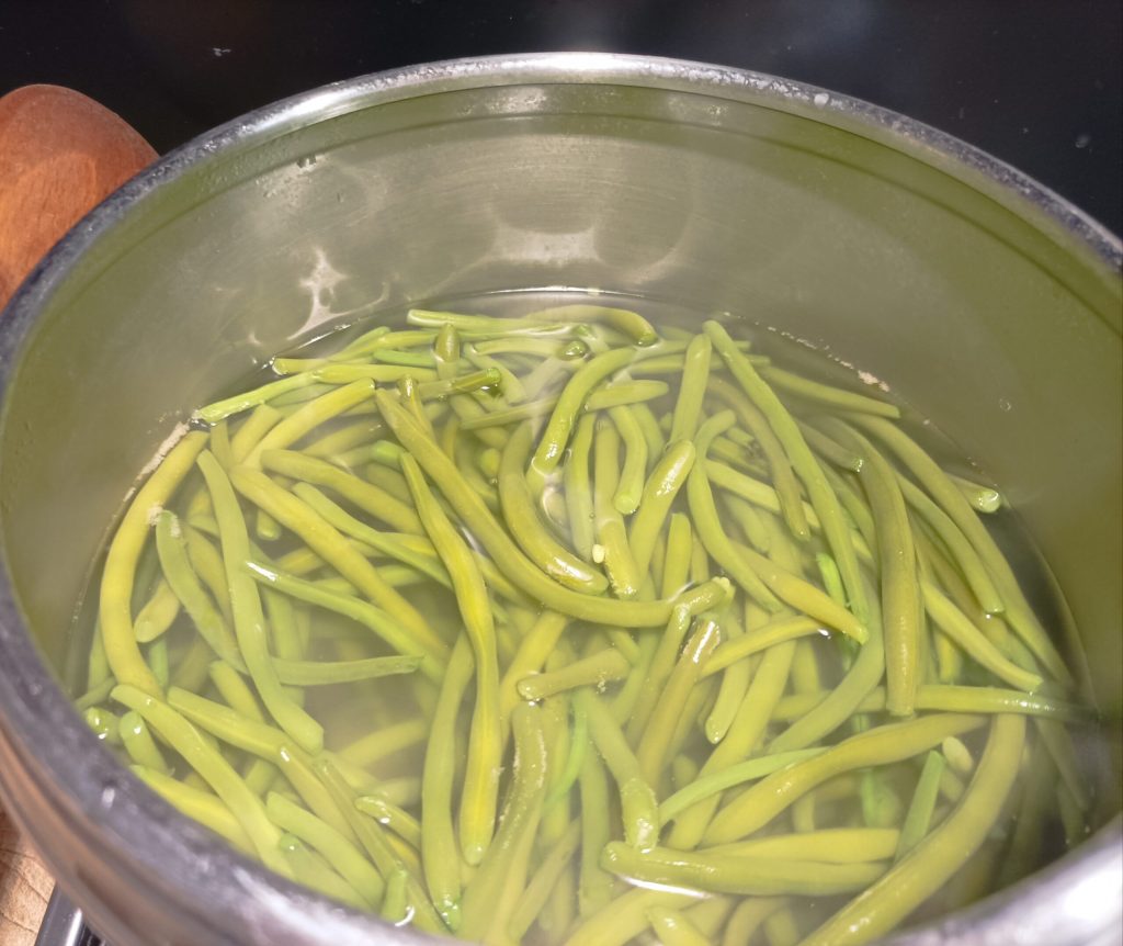 Em uma panela, ferva água, coloque as vagens e adicione sal. Cozinhe por 20 minutos a partir do momento em que começa a ferver.