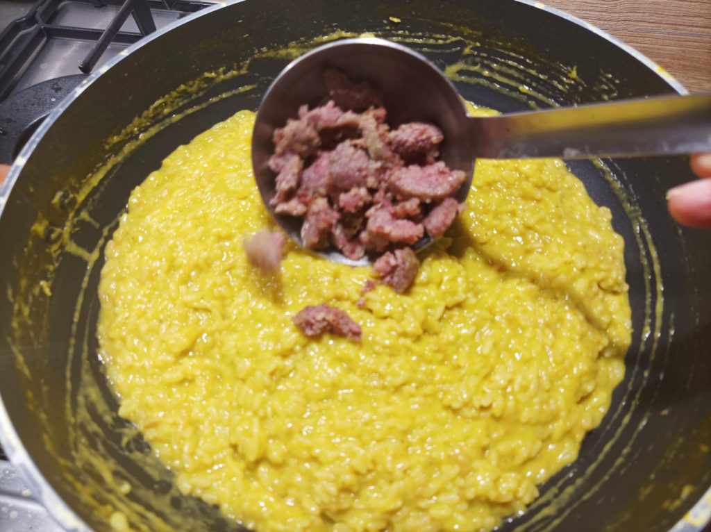 O risoto com legumes e linguiça de Norcia é muito particular, mas muito saboroso e cremoso. O sabor se mistura entre o doce e delicado sabor da abobrinha e do pimentão e aquele decidido e intenso da linguiça de Norcia com todos os seus aromas. Ótimo para quem aprecia muito essa linguiça, não é preciso muito tempo para prepará-lo, como pode parecer, mas se divide apenas em mais fases. Se você quer surpreender com um risoto diferente, certamente com esta receita você acertará. Para o caldo, usei um cubo caseiro que contém diversas especiarias e aromas, e isso também incrementou o sabor especial. Para descrevê-lo perfeitamente, é preciso prová-lo… então não resta nada além de tentar!! Aqui está a receita.