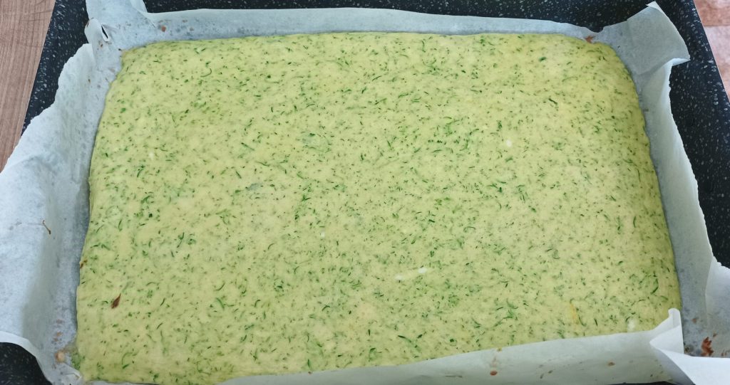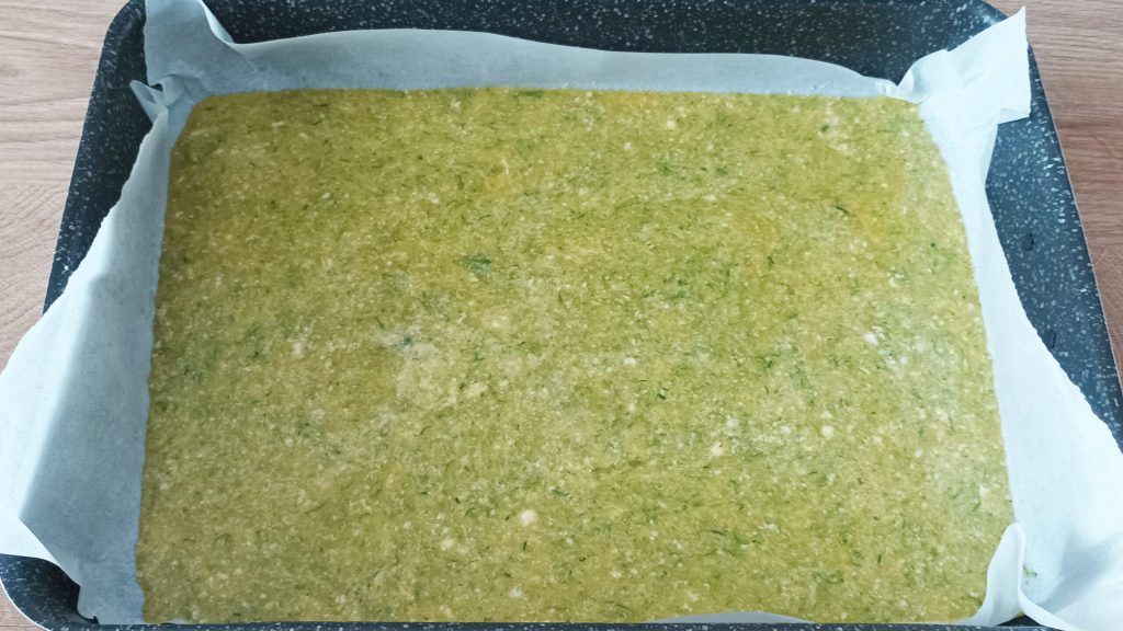 No prato para forno, forre a base com uma folha de papel manteiga e despeje as ovos por dentro, mova o prato delicadamente para expandir bem os ovos, inclusive nos cantos, para ter uma forma o mais regular possível.