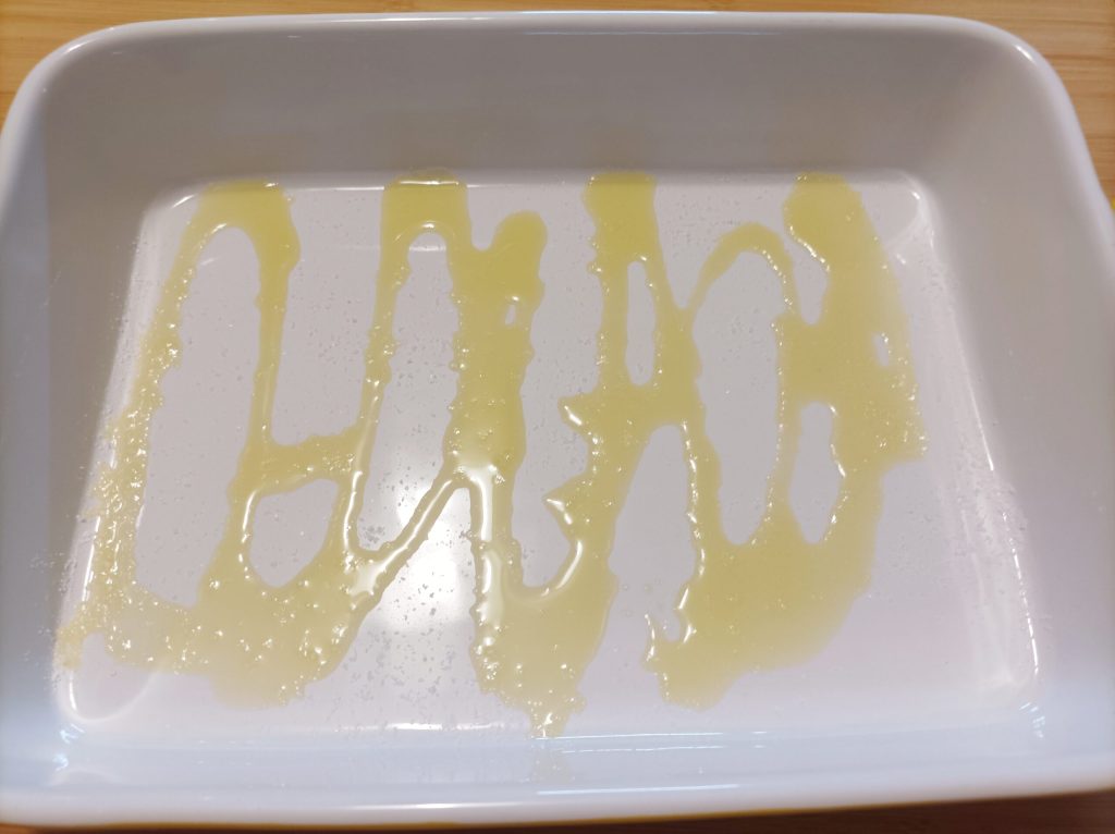 Na assadeira coloque um fio de óleo e sal.