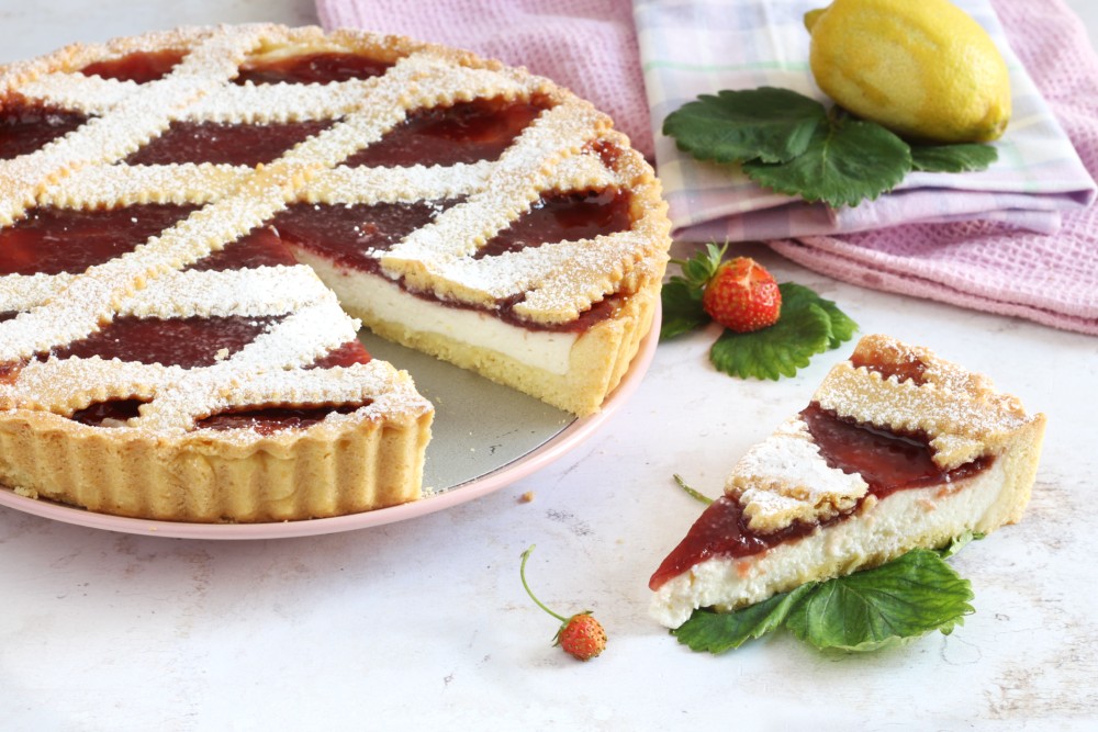 Esta torta de ricota e geleia sem manteiga rápida, tem um recheio extremamente cremoso e de sabor equilibrado, a geleia adiciona doçura e sabor a uma camada abundante de creme de ricota, a massa fina e crocante forma uma casca deliciosa e perfumada. Uma torta realmente gostosa e simples para propor como lanche.