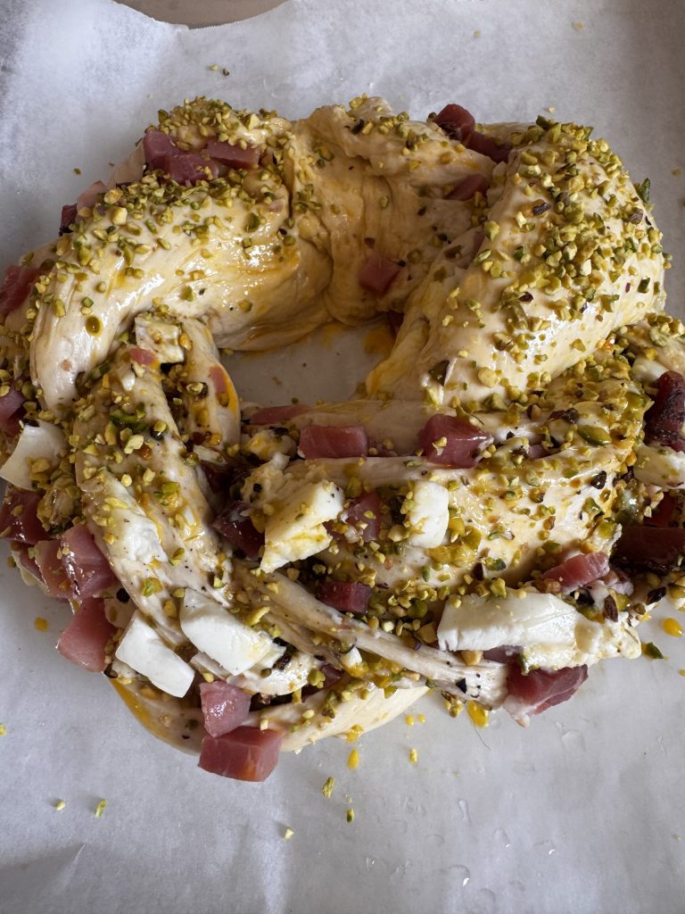 Assar por 40/50 minutos. Se os pistaches começarem a queimar, cobrir com um pouco de alumínio a angelica salgada com fermento natural nos últimos dez minutos de cozimento.