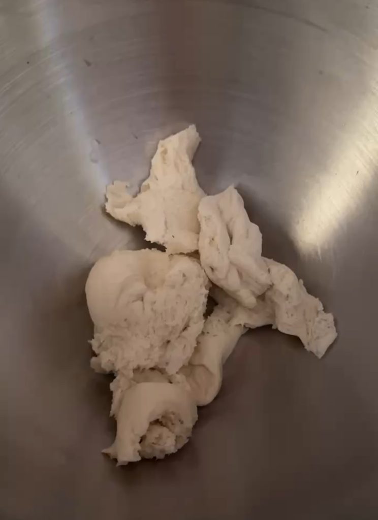 Adicione o óleo (também de sementes ou EVO) aos poucos, deixando-o ser bem absorvido.Finalize com o sal, aumente a velocidade da batedeira e deixe formar a massa.