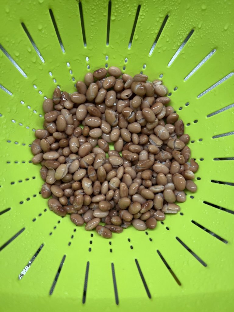 Começamos enxaguando bem o feijão com um escorredor e reservando.