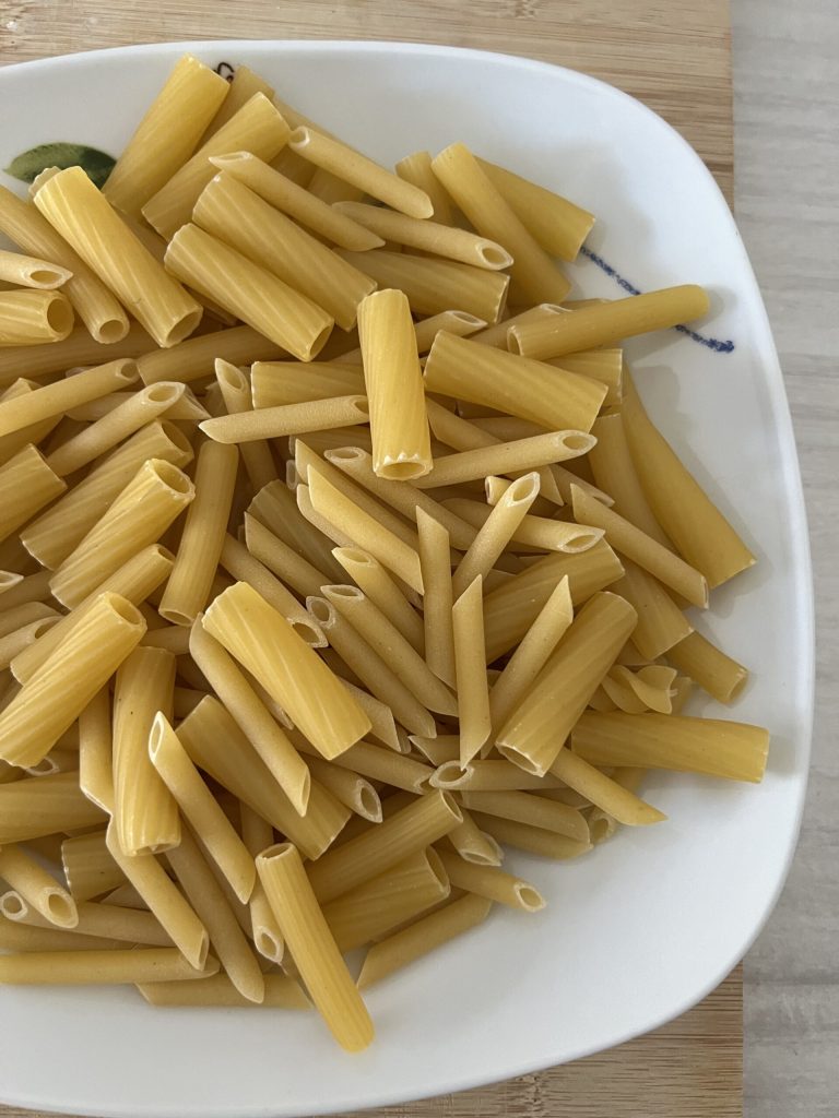 - 180 g macarrão (fusilli, penne ou rigatoni)