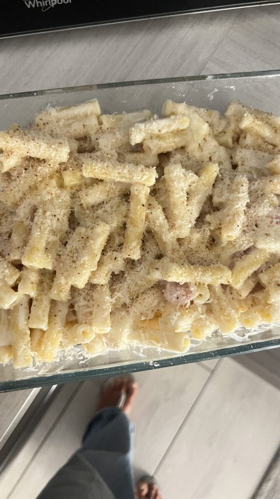 Em Nápoles, na verdade, tem muitos nomes. Na minha casa era o macarrão ao molho bechamel, mas também é famoso como “macarrão ao gratê“.
