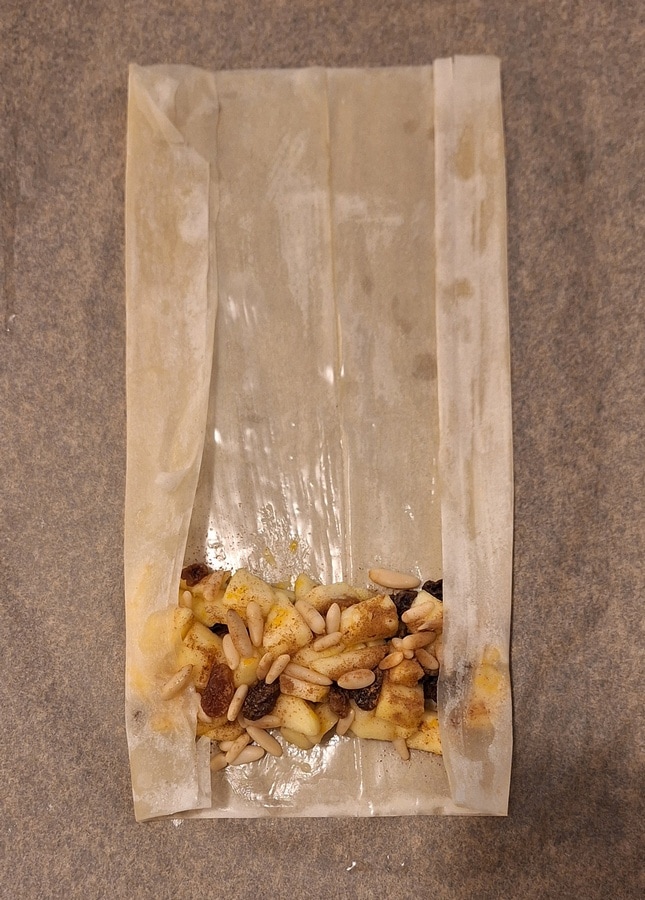 Os mini strudel de maçã com massa filo são porções individuais deliciosas, riquíssimas em maçãs, uva-passa e pinhões com uma crosta crocante de massa filo enriquecida com lâminas de amêndoas.