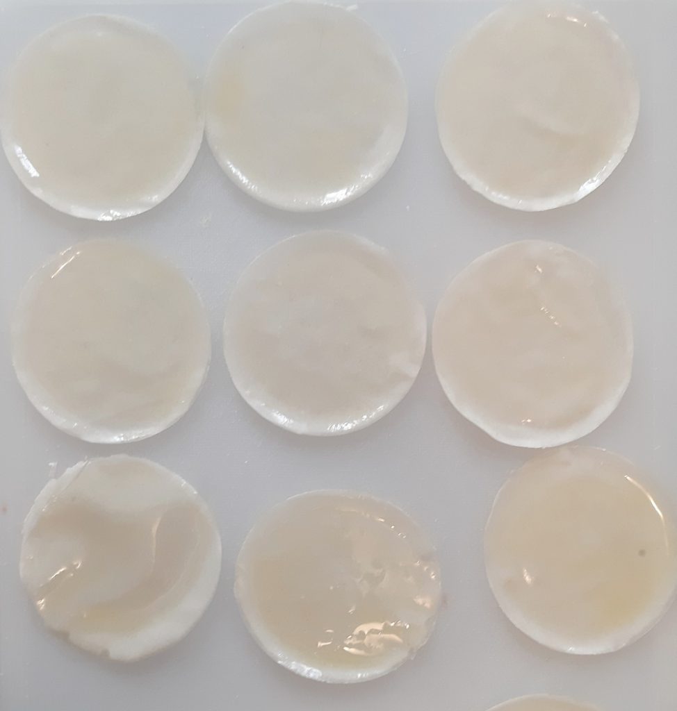 Pegue 9 discos, pincele-os com a manteiga derretida e coloque-os na bancada, um ao lado do outro, sobrepondo-os ligeiramente.