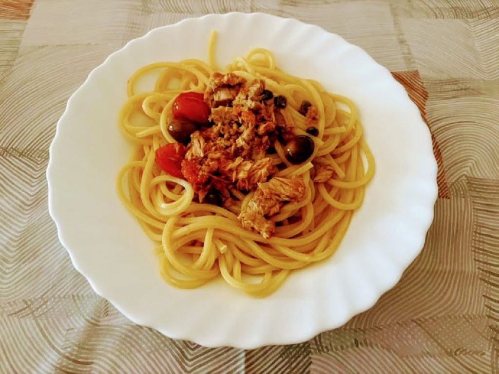 Os spaghetti alla puttanesca picantes com pimenta têm muito sabor. Podem ser comprados bons tomatinhos que os avós conservavam pendurados num prego no porão que duravam o inverno todo, dos vendedores de produtos orgânicos. As azeitonas pretas que se preparam em casa no outono e são conservadas em garrafas com sal aromatizadas com erva-doce. Neste conteúdo há um ou mais links de afiliação.