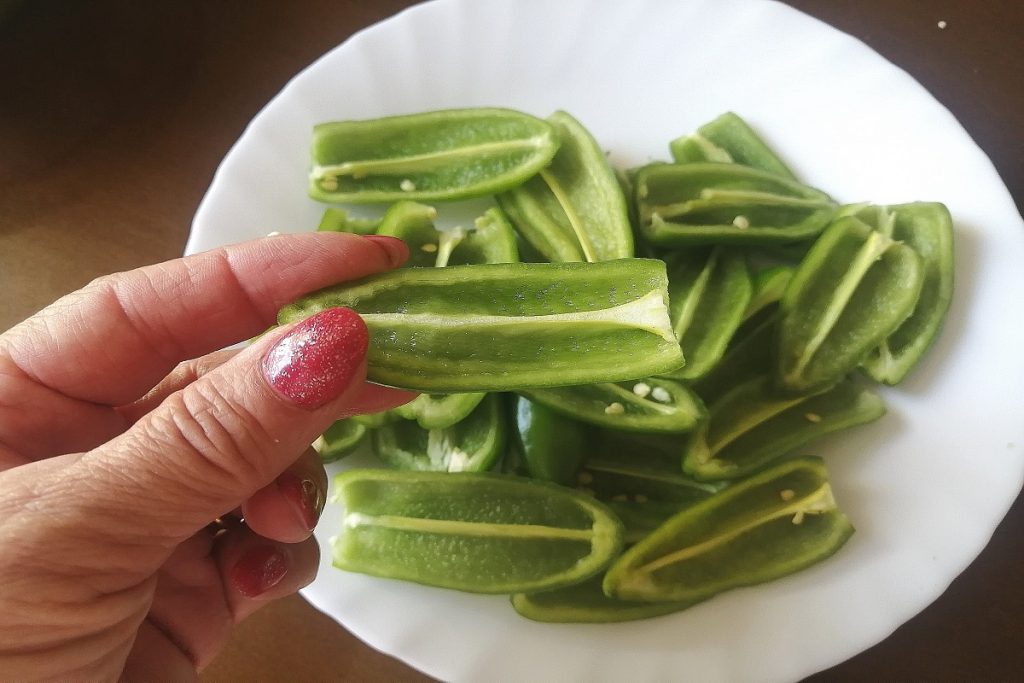 • Depois de preparar o recheio, passamos para os pimentões.
