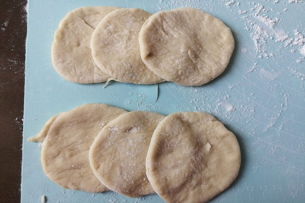 Após o tempo de levedação, pegue a massa e abra-a com um rolo em uma espessura de 5 mm.