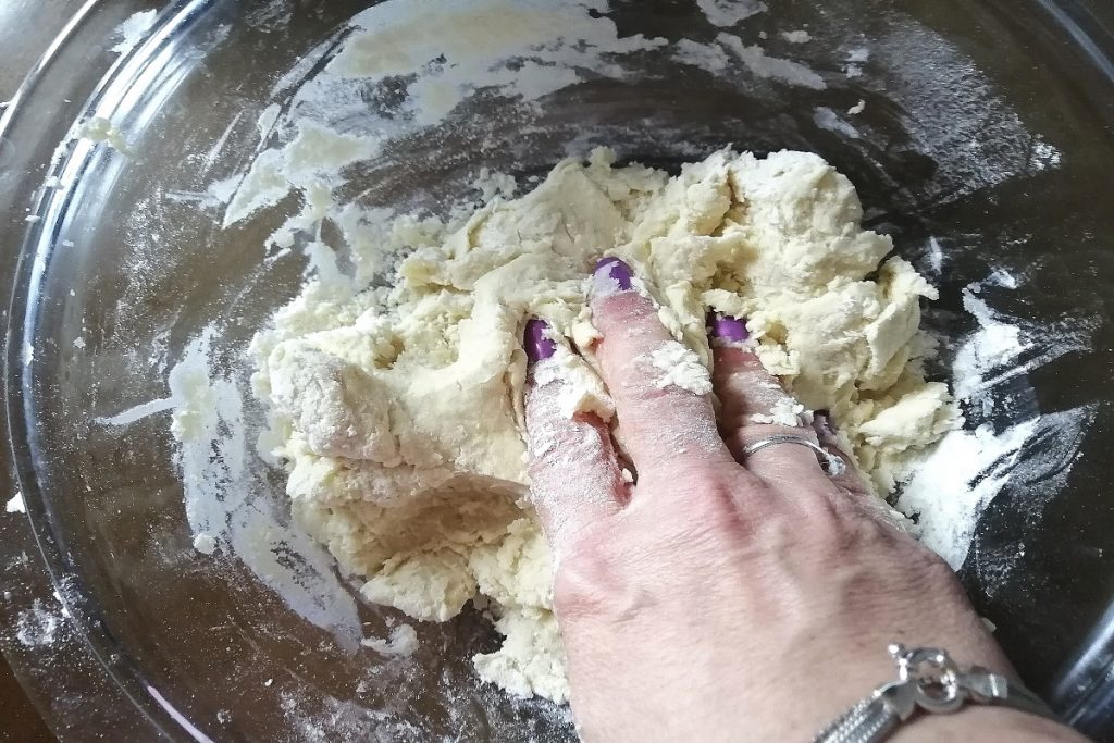 • Quando a massa começar a ficar consistente, começamos a amassar com as mãos até obter uma massa bem lisa e firme.