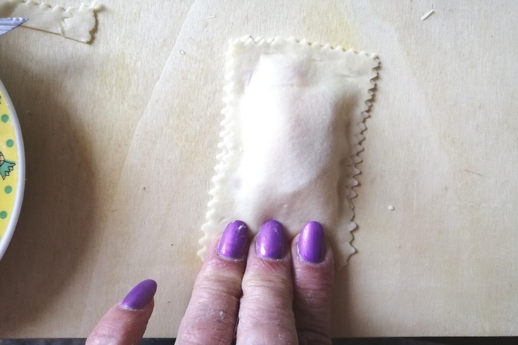 • Cobrimos com o outro retângulo e pressionamos com os dedos nas bordas para selar.