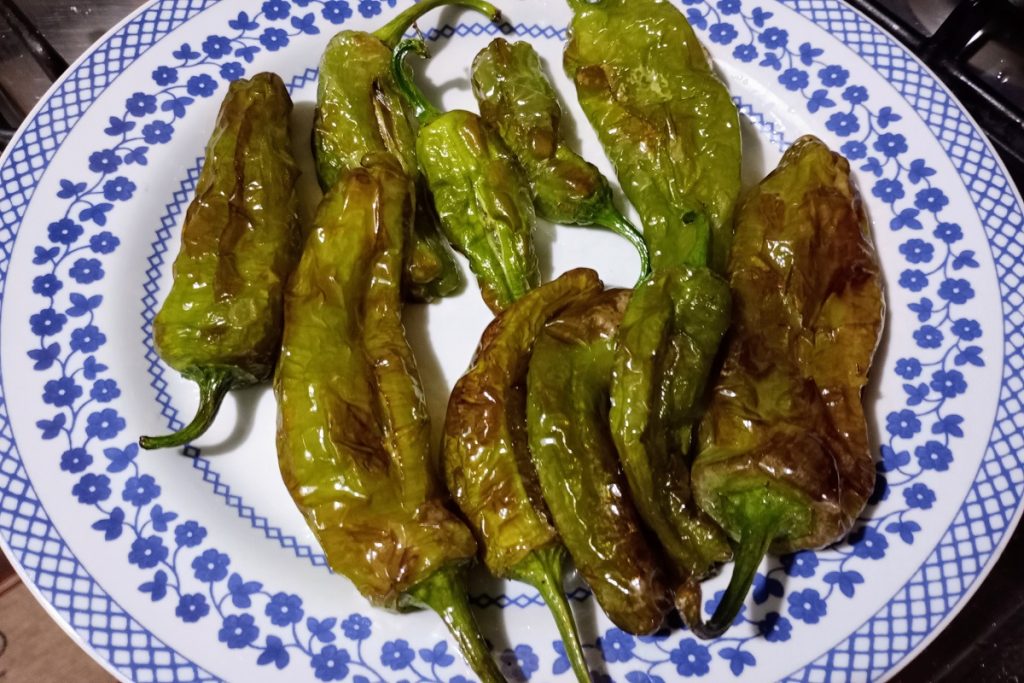Os protagonistas são os pimentões friggitelli, pequenos pimentões verdes tenros e doces que cozinham rapidamente.