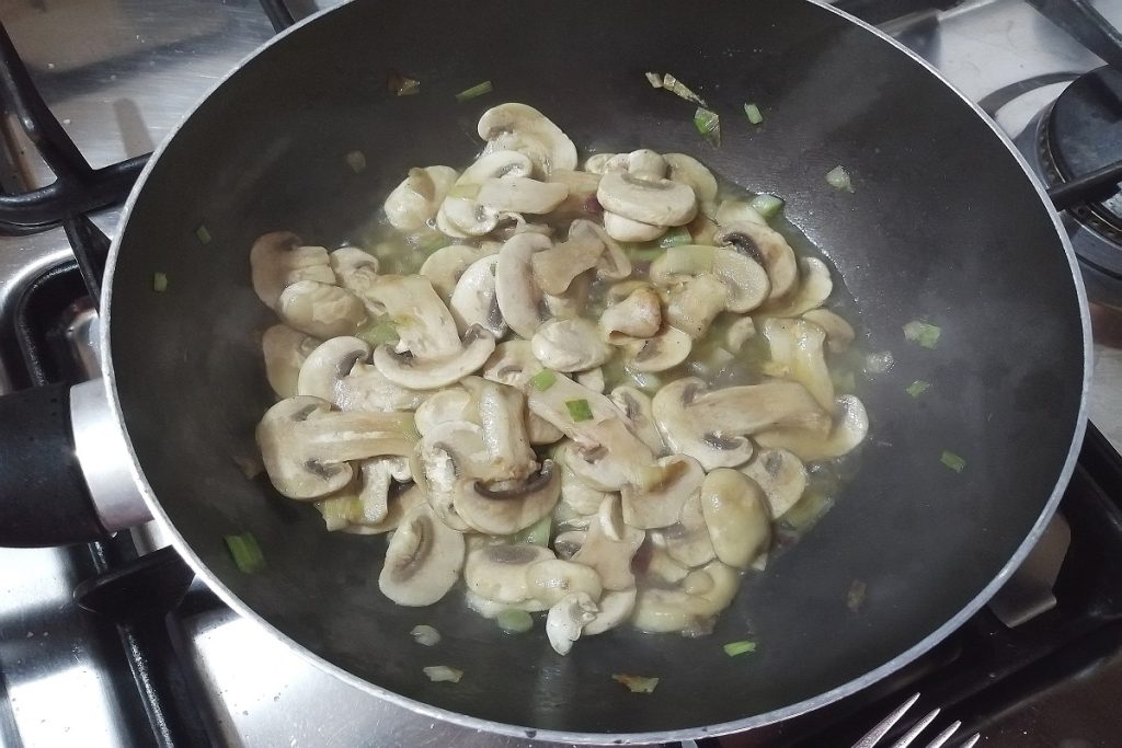 • Cortamos a parte final do caule dos cogumelos, limpamos com um pano úmido e fatiamos.