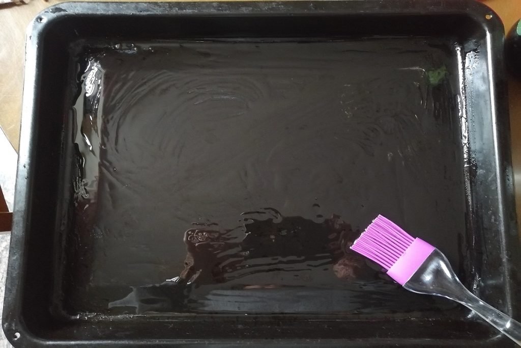 Unte a assadeira com azeite EVO e disponha as fatias de batata formando uma única camada, ligeiramente sobrepostas.
