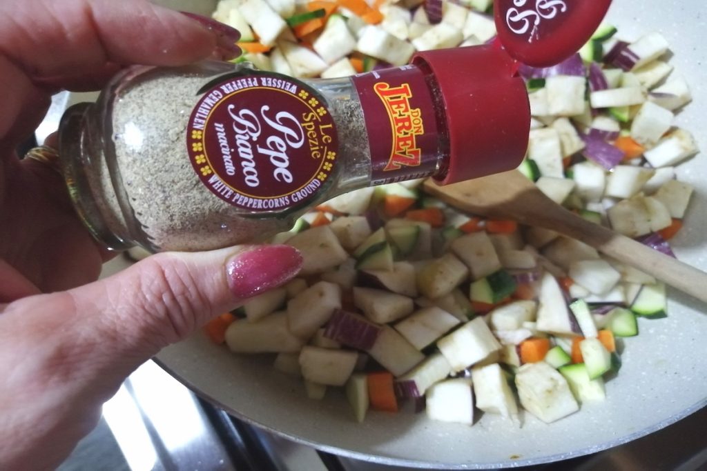 • Temperamos os legumes com sal, pimenta branca e salsa.